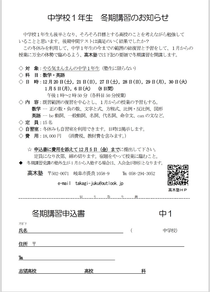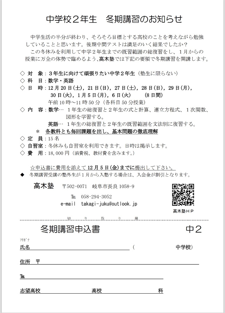 冬期講習(中学生)