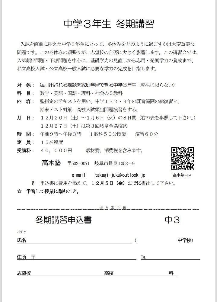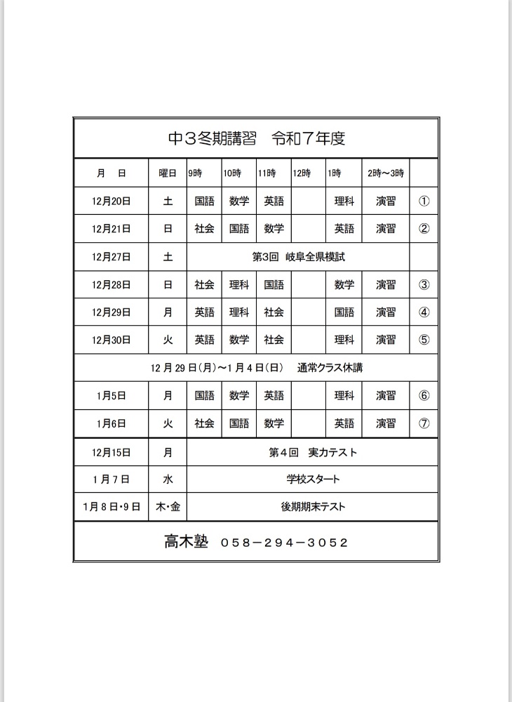 2025年度冬期講習12月20日よりstart!