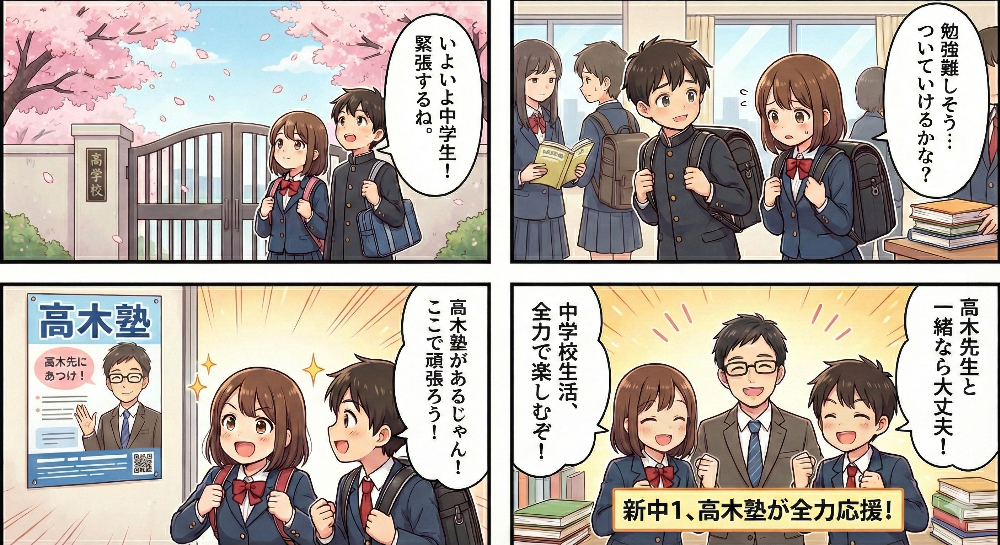 3月5日(木)からスタート高木塾の新中1生向けの中学準備講座。完全無料で5教科の授業を1回ずつ受けられます。4月に習う授業を先取りして中学校生活への自信をつけるチャンス。詳細は以下のリンクからご確認ください。https://www.takagi-juku.com/p/12/